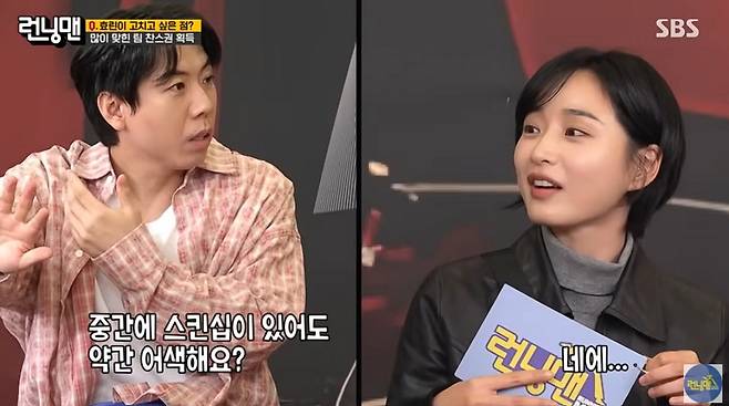 지난 12일 방송된 SBS 예능 프로그램 '런닝맨'에는 배우 방효린, 양세종, 변요한, 김강우가 게스트로 출연해 멤버들과 유쾌한 케미를 선보였다. 이날 방송에서는 '효린이 고치고 싶은 점'에 대해 퀴즈가 진행됐다.