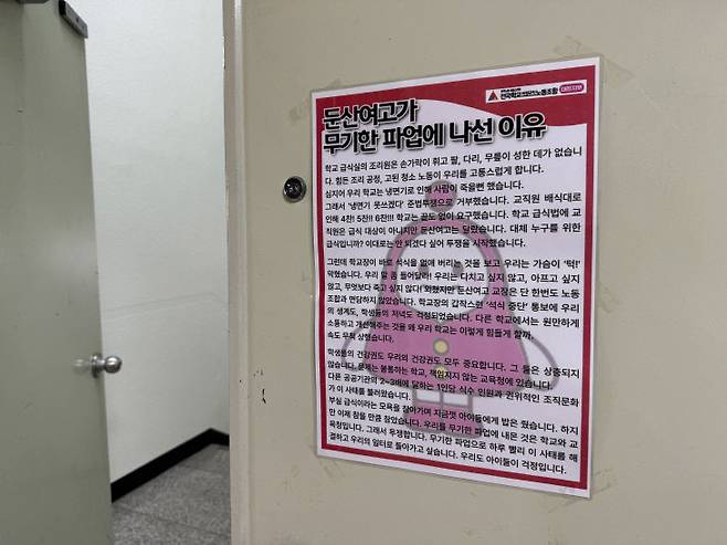 "석식 재개하라" 둔산여고 14일부터 조리원 파업 돌입… 4~5개교 확산 조짐