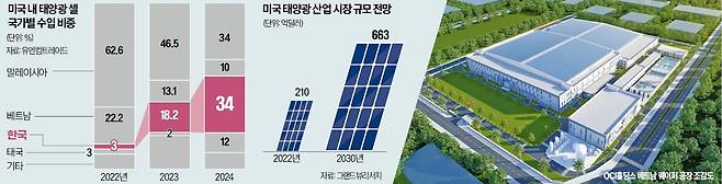 업계에선 미국 태양광 시장을 장악했던 중국의 빈자리를 한국이 상당 부분 채울 것으로 기대한다. 한국 기업이 동남아에 매물로 나온 중국 기업 공장을 사들이거나 아예 미국 현지에 태양광 생산시설을 짓는 식으로 공급망을 구축할 유인이 생겼기 때문이다.