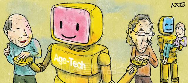 ‘에이지 테크’는 고령자와 돌봄 종사자를 대상으로 인공지능(AI)·로봇 등 디지털 기술을 결합해 개인 맞춤형 서비스를 제공하는 ‘고령 친화 기술’이다. 단순 돌봄 기술을 넘어 쇼핑·금융·상속·커뮤니티 활성화 등 고령자를 위한 모든 기술·제품·서비스를 의미한다. 글로벌 에이지 테크 산업은 연평균 23% 성장,세계 경제의 8%이상을 차지할 블루오션으로 전망된다.