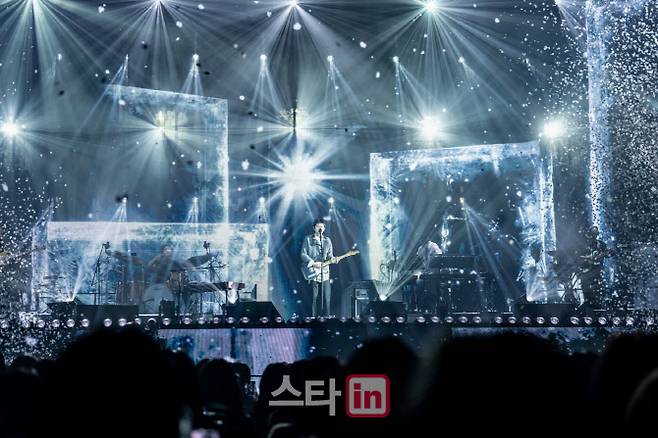 하현상은 ‘수평선 너머 비추는 푸른 빛, 그 어딘가를 향하는 것’을 테마로 꾸민 무대에서 기타, 베이스, 드럼, 키보드, 신시사이저, 첼로 등 6인 세션으로 구성된 밴드와 공연을 펼쳤다.