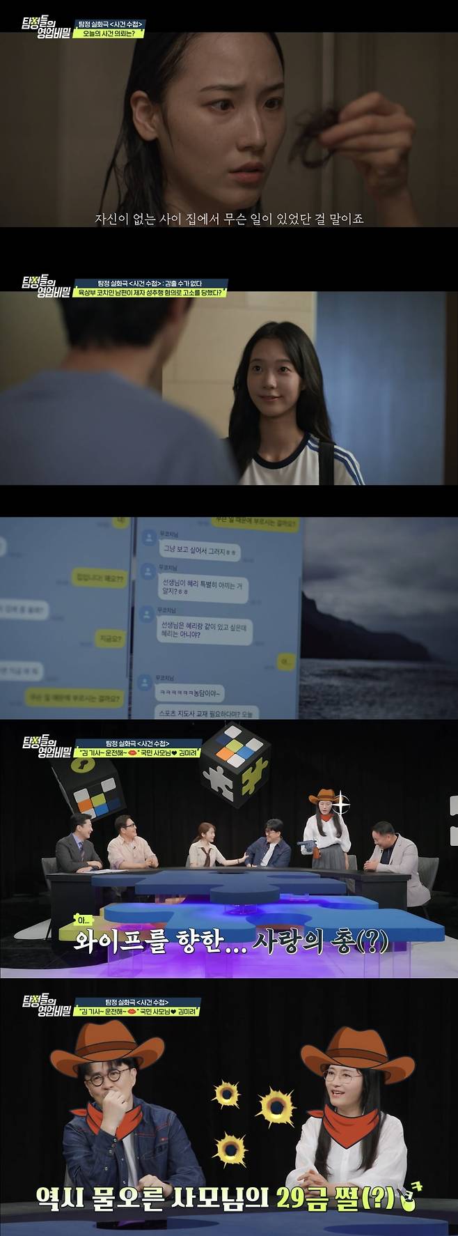 이날 방송에는 '영원한 국민 사모님' 김미려가 일일 탐정으로 합류해 유쾌한 웃음을 더한다. 김미려는 남편의 별명 '연남동 총잡이'에 얽힌 비하인드부터 상상을 초월하는 29금 토크로 스튜디오를 초토화시킨다. 이에 데프콘은 "성대모사 몇 개만 하자, 수위가 너무 높아 방송에 나갈 수 있는 멘트가 많이 없다"며 진땀을 빼는 모습을 보여 폭소를 유발한다.