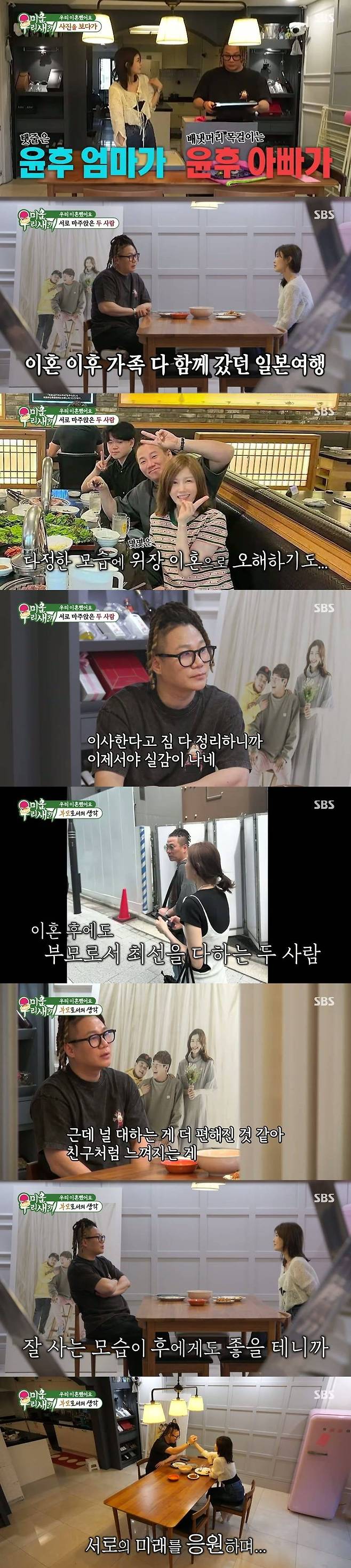 두 사람은 식사하며 다가올 이별을 앞두고 솔직한 대화를 나눴다. 서로의 앞날과 아들 윤후에 대한 의논도 함께 나누었다. 이에 신동엽은 “이혼했지만 사이좋은 부부도 꽤 많다. 서로 헐뜯는 모습보다 자녀에게도 훨씬 좋은 모습일 것”이라며 두 사람의 모습을 존중했다. 윤민수와 전 아내는 “이혼은 했지만 20년을 함께해왔으니 가족”이라며 서로 어려운 일이 있으면 연락하자며 서로를 향해 진심 어린 응원을 건넸다.