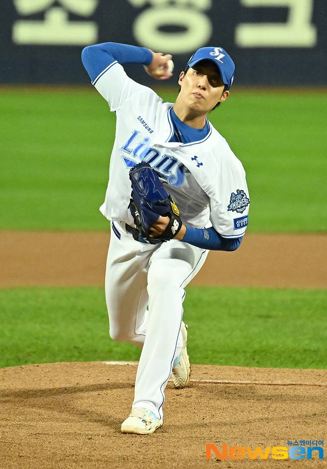 이날 선발등판한 원태인은 6.2이닝 1실점 호투를 펼쳤다. '푸른 피의 에이스'는 이날도 강력했다.