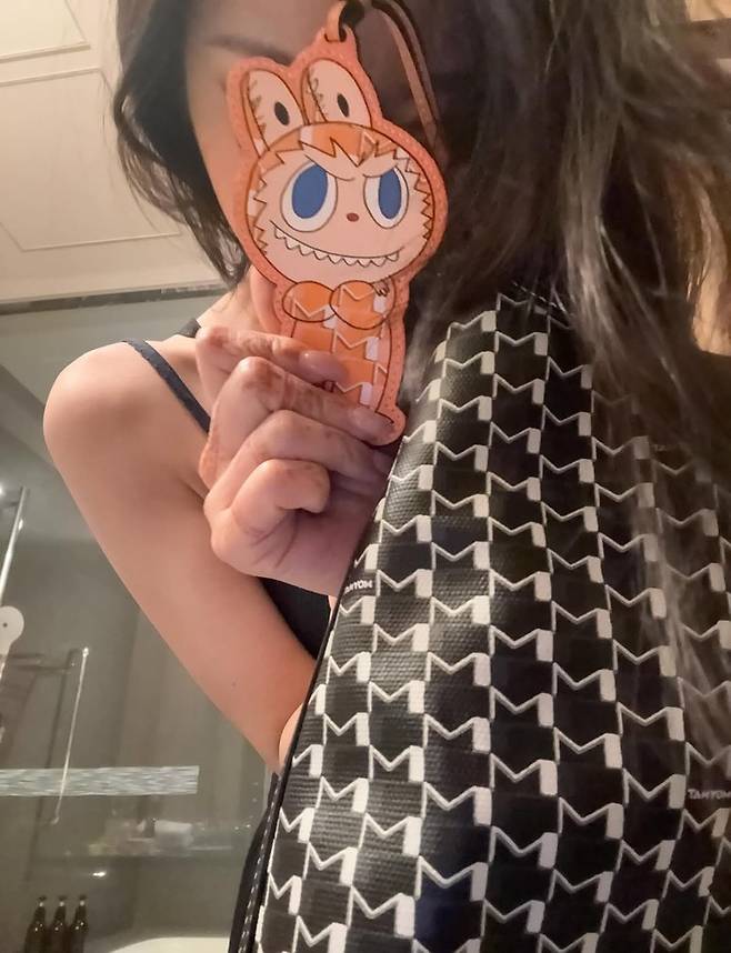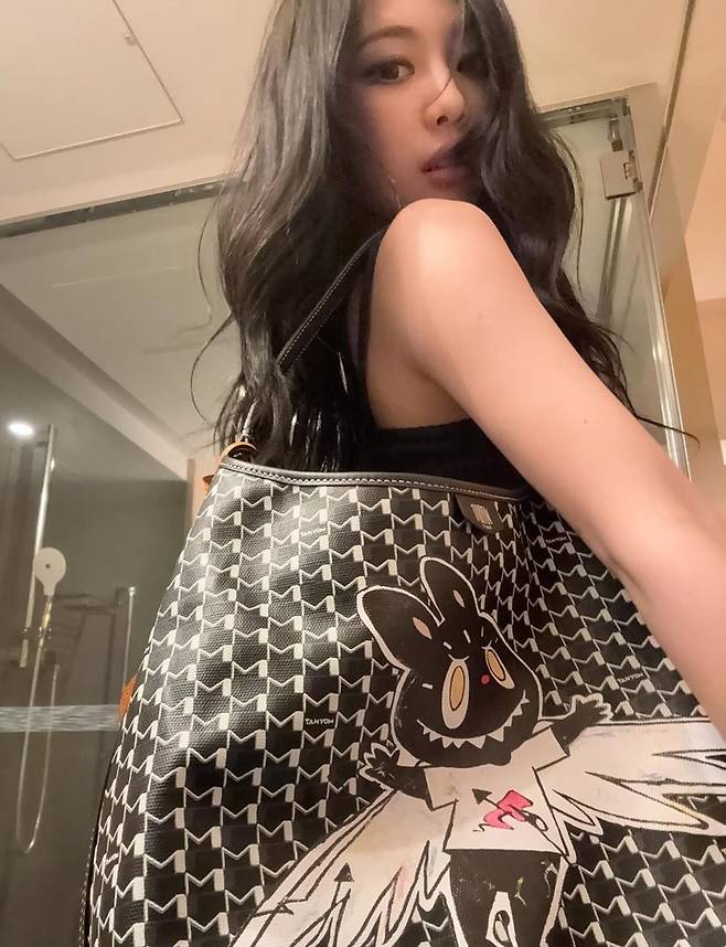 사진 속 그는 검정 탑에 오버사이즈 패턴 토트백을 매치해 스트릿 무드를 강조했다. 백에 달린 그래픽 키링과 애니멀 일러스트가 더해지며 장난기 가득한 감성을 완성했다.