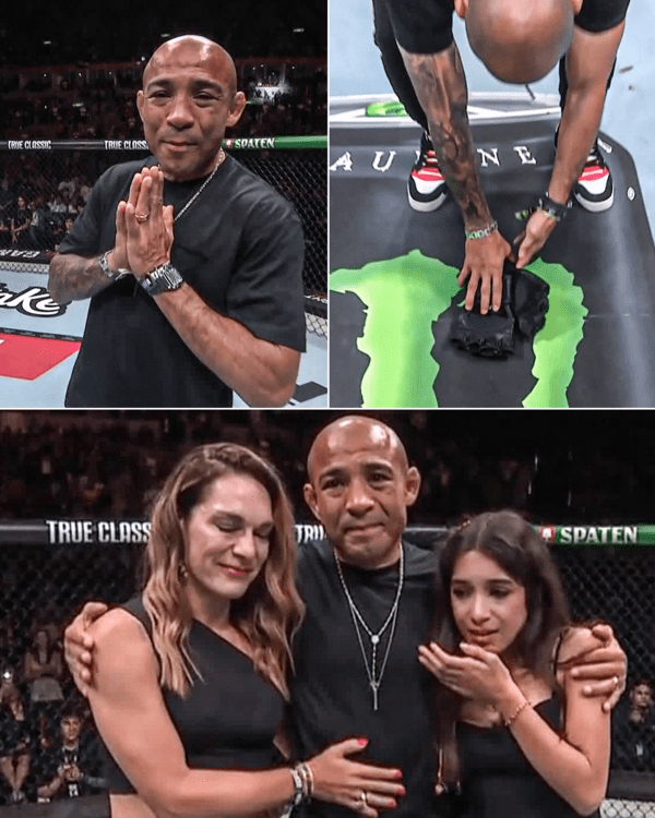 케이지에 들어선 알도는 중앙에 글러브를 내려놓으며 공식적으로 은퇴를 선언했다. 좀전까지 환호성을 즐기던 알도는 금세 눈시울이 붉어졌고, 자기 인생의 절반을 함께한 케이지를 떠나게 됐다.