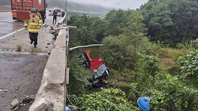 경부고속도 김천 추풍령대교서 트레일러 다리밑 추락…1명 사망