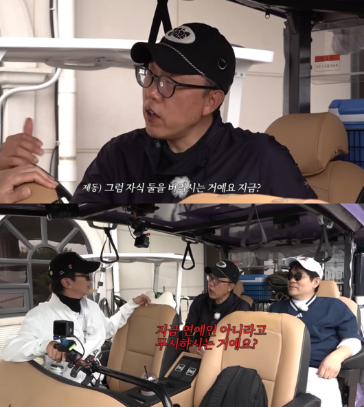 영상에서 김제동은 두 사람과 골프 대결을 펼쳤다. 평소 절친한 세 사람은 특유의 입담과 티키타카로 웃음을 자아냈다.