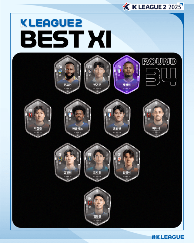 [하나은행 K리그2 2025 34R MVP, 베스트 팀/매치, 베스트11]