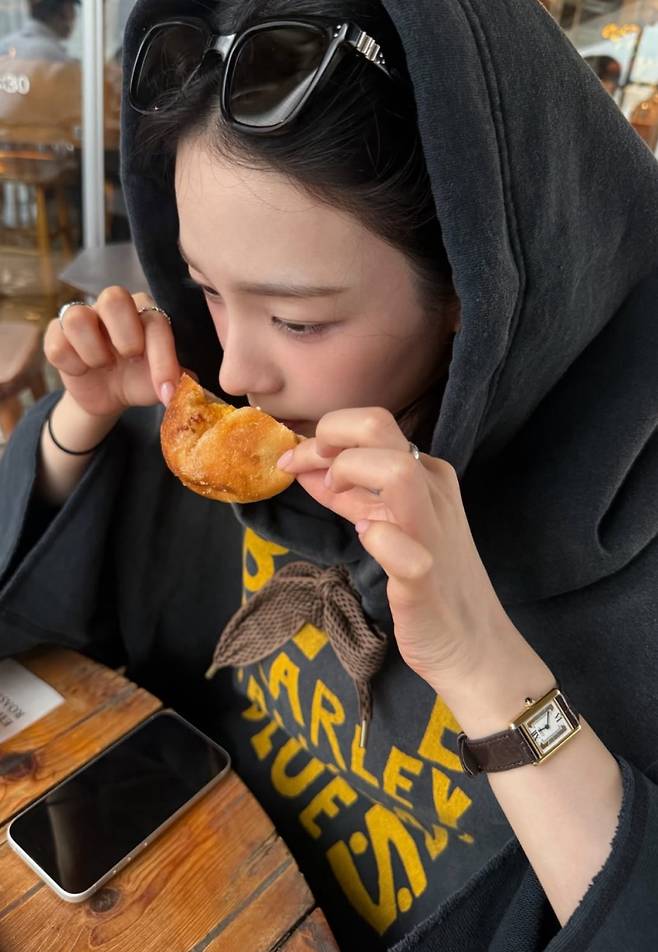 사진 속 카리나는 후드티를 푹 눌러쓴 채 카페에서 빵을 즐기며 수수한 매력을 드러냈다. 꾸밈없는 민낯임에도 맑은 피부와 또렷한 이목구비가 돋보이며, 팬들은 “민낯이 이 정도면 반칙”, “피곤해도 여전히 예쁘다” 등의 반응을 보였다.