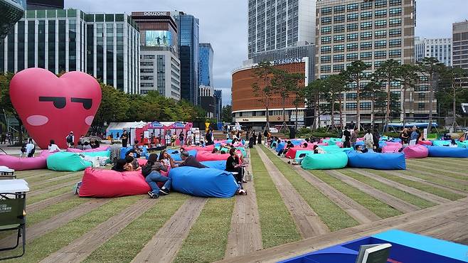'스프링' 조형물이 있는 광장에는 사람들로 북적였다. 광장 주변은 행사 준비로 분주했지만, 가을 햇살 속에서 반짝이는 청계천은, 서울의 생기와 따뜻한 정서를 그대로 품고 있었다. 도심의 빌딩숲 사이로 흘러내리는 청계천은 오늘따라 유난히 맑고 평화로워 보였다.