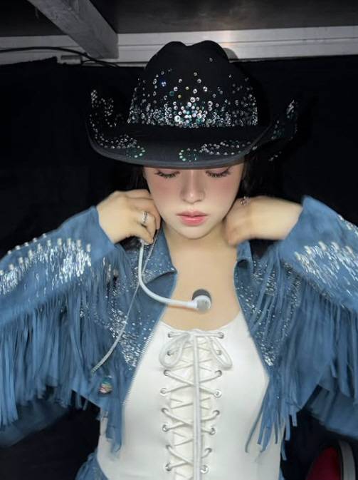 정연은 13일 자신의 계정에 "인 싱가포르"라며 사진을 여러 장 게재했다. 공개된 사진에서 정연은 섹시한 카우걸 의상을 입고 무대를 준비하고 있는 모습이다.