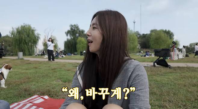 한채아는 같은 아파트에 사는 친한 지인과 함께 걸어서 노들섬으로 향했다. 한강변에 앉아 힐링을 하기 위함. 두 사람은 도착한 뒤 돗자리를 펴고 수다를 떨었다.