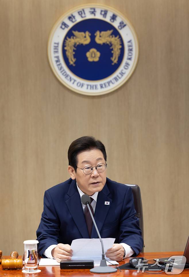 (서울=뉴스1) 허경 기자 = 이재명 대통령이 14일 서울 용산 대통령실 청사에서 열린 국무회의에서 발언하고 있다. (대통령실 제공. 재판매 및 DB 금지) 2025.10.14/뉴스1