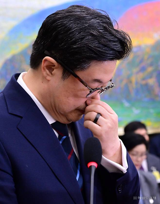 [헤럴드경제=이상섭 기자] 김병주 MBK파트너스 회장이 14일 서울 여의도 국회에서 열린 정무위원회의 공정거래위원회 등에 대한 국정감사에 증인으로 출석해 의원들의 질문을 듣고 있다.