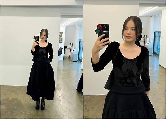 공개한 사진 속 민효린은 거울로 자신의 모습을 촬영하고 있다. 최근 지인의 결혼식에 참석했다가 찍힌 사진 속 의상과 동일한 의상을 입고 있는 것으로 보아 같은 날인 것으로 보인다. 그는 여전히 아름다운 미모로 눈길을 모았다.