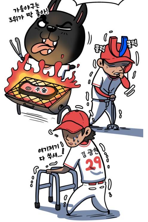 | ▲ 최정과 김광현의 활약이 간절한 SSG(출처: 2025 KBO 야매카툰 중) |