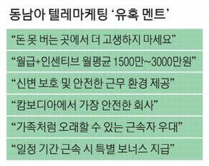 해외 구인·구직 사이트에 들어가면 이 같은 문구가 붙은 '동남아 텔레마케팅(TM) 모집' 글을 어렵지 않게 찾을 수 있다. 경력이나 현지 언어능력이 없어도 "신입은 주급 300만~500만원, 경력은 1000만~2000만원을 벌 수 있다"는 감언이설이 구직자들을 유혹한다.