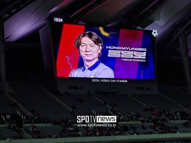 하지만 손흥민 다음으로 홍 감독의 사진과 이름이 전광판에 등장했다. 곧바로 축구 팬들은 야유와 침묵으로 홍 감독의 소개를 맞이했다. 선수단 소개와 정반대의 모습이었다.