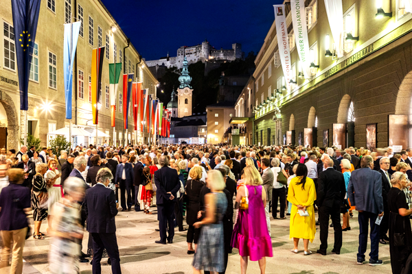 잔뜩 멋내고 차려입은 관객들은 그 자체가 축제의 볼 거리다. 잘츠부르크 축제 주공연장인 대극장앞 호프슈탈가세./SF Kolarik Andreas