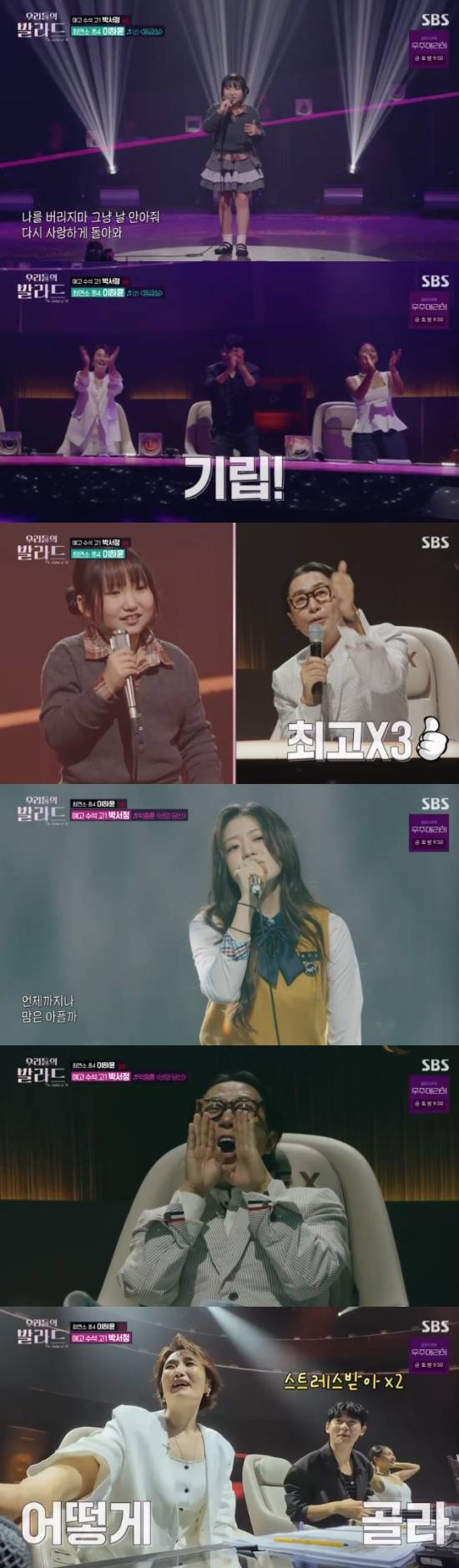 '우리들의 발라드'에서 예고 수석 박서정이 최연소 참가자 이하윤을 꺾고 3라운드에 진출했다.