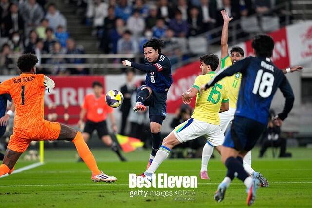 미나미노는 후반 7분, 우에다가 전방 압박을 가하는 과정에서 상대 수비의 실수를 놓치지 않고 공을 빼앗아 득점으로 연결했다. 전반전 내내 브라질에 끌려가던 흐름을 바꾸는 결정적인 만회골이었다.