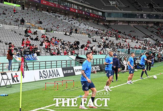 [더팩트ㅣ서울월드컵경기장=남용희 기자] 대한민국과 파라과이의 평가전이 14일 오후 서울 마포구 서울월드컵경기장에서 열린 가운데 관중석 곳곳이 비어있다.