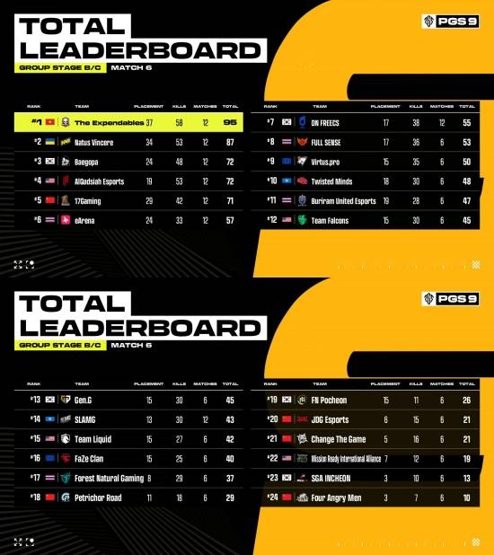 디 익스펜더블스, 2일 차 그룹 스테이지 1위 등극…DN 프릭스 파이널 진출 위기(PGS 9) [종합]