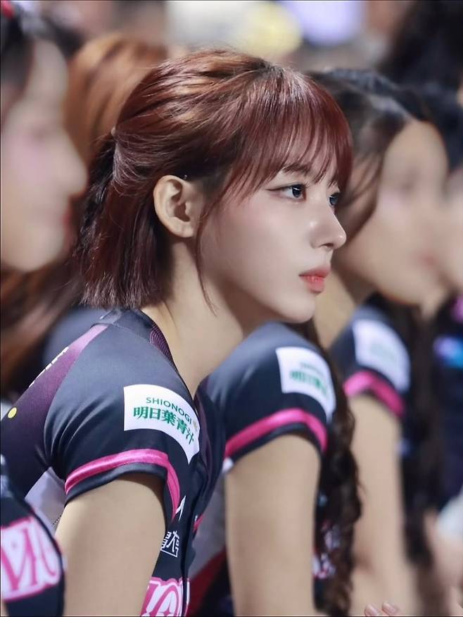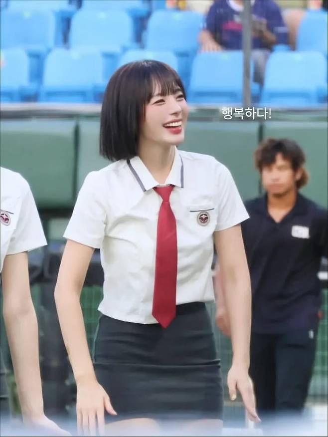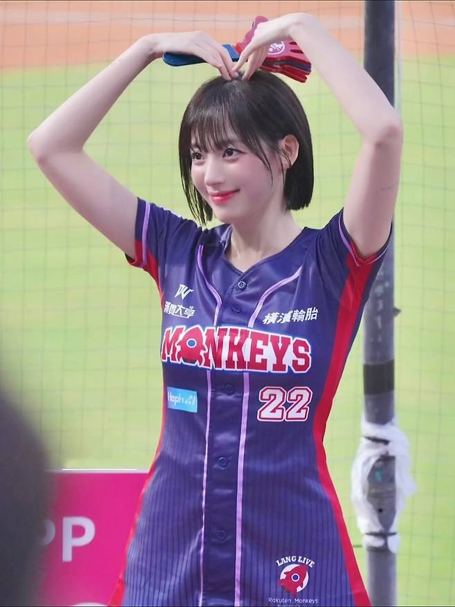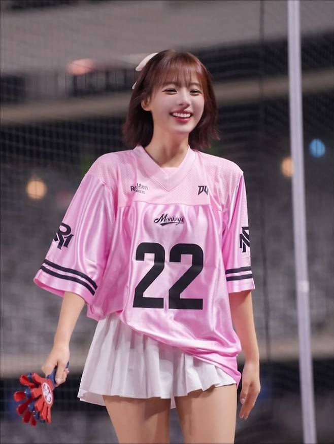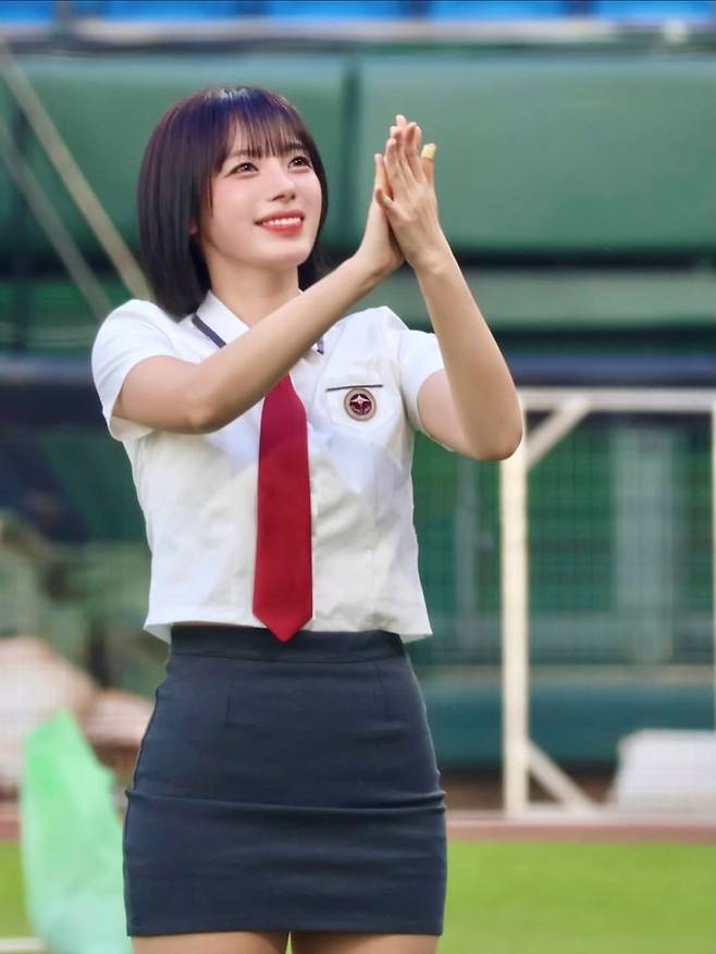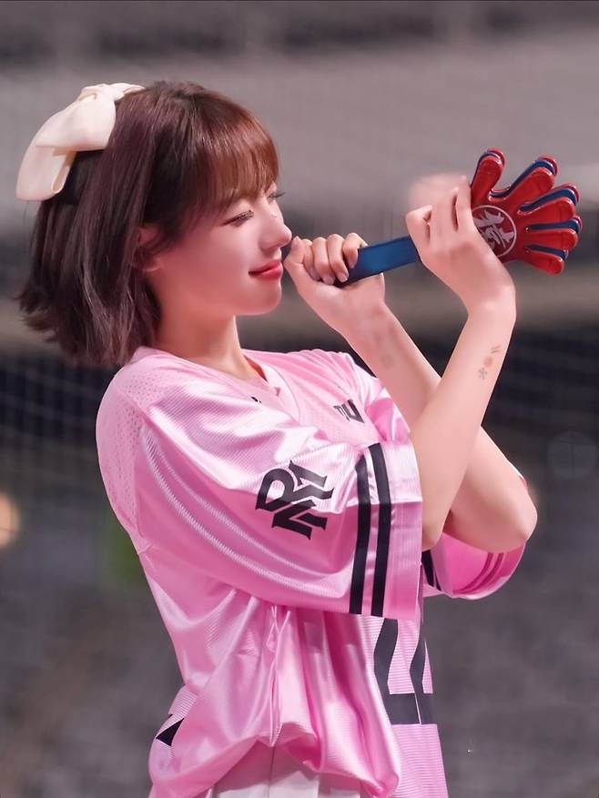 이어 야구 유니폼을 입은 컷에서는 에너지 넘치는 미소와 함께 치어리더다운 밝은 에너지를 발산했다.