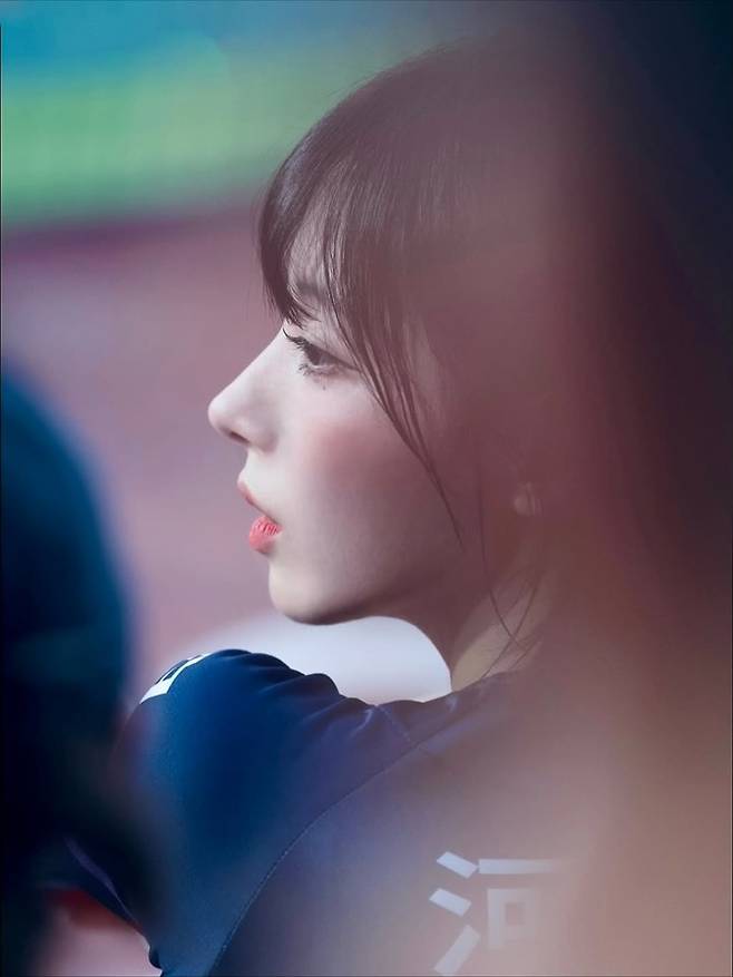 공개된 사진 속 하지원은 스포티한 매력의 팀 유니폼을 입고 경기 중 집중한 표정으로 앞을 응시하고 있다.