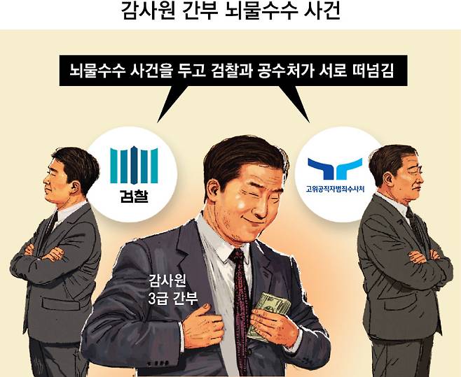 고위 공직자가 저지른 범죄 수사를 담당하는 공수처는 감사원 3급 간부인 김모 씨의 15억여 원 뇌물 사건을 수사한 뒤 2023년 11월 검찰에 특가법상 뇌물 혐의 등을 적용해 기소해 달라며 사건을 넘겼다. 공수처법에 따르면 공수처는 판사와 검사, 경무관 이상 경찰에 대해서만 기소권을 갖고 있고 나머지 고위 공직자에 대해선 수사권만 갖고 있기 때문이다.