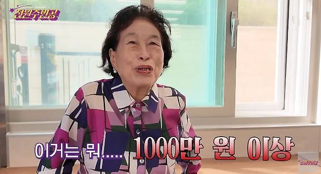 제작진은 전원주에게 "현재 입은 옷이 다 얼마냐"라고 물었다. 그러자 전원주는 "공짜"라고 하면서 옷을 보통 TV 나가면 홍보해준다고 얻어 입는다고 했다. 가방도 선우용여에게 받은 거라고. 그는 "가방을 쫙 진열해놨는데 시원치 않은 건 버리려고 빼놓는다. 그래서 받아왔다"고 했다.