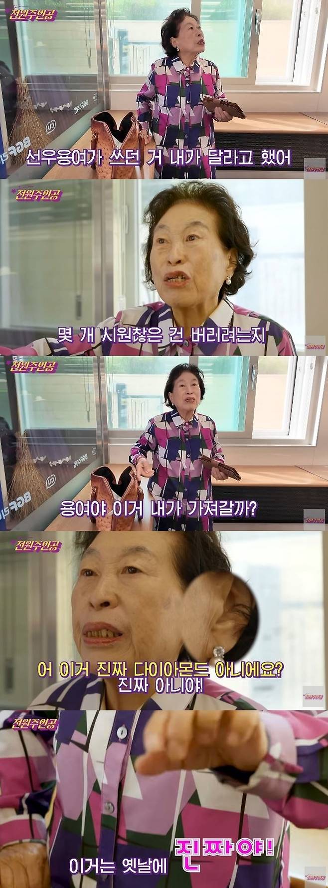 귀걸이도 가짜였다. 전원주는 "남대문 이런 데 가면 파는 거다"라고 했다. 다만 손에 있는 반지는 진짜라고. 전원주는 다이아 반지에 "이건 한 천만 원 되나 봐"라며 웃었다.