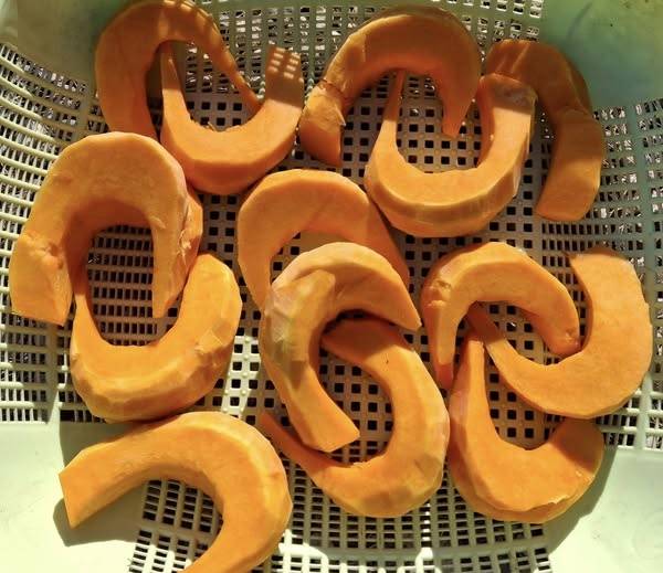 | ▲ 편자를 닮은 늙은 호박 농막 앞 텃밭에서 잘 익은 늙은 호박을 따다가 정성스럽게 손질하였습니다. 요즘 아침 식사는 호박죽입니다. |