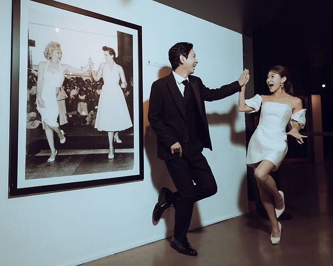 공개된 사진 속 예지원은 시크한 블랙 드레스와 우아한 디자인의 화이트 미니 드레스를 완벽하게 소화했으며, 함께한 배우 김민종은 젠틀한 블랙 수트 차림으로 시선을 사로잡았다. 특히 두 사람이 마릴린 먼로 사진 앞에서 위트 있는 포즈를 취하는 모습이 팬들로 하여금 유쾌한 웃음을 자아낸다.