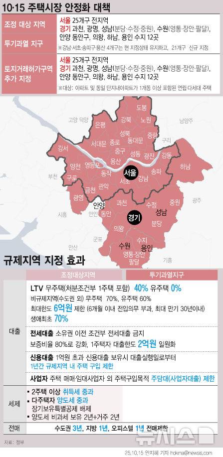 ![[서울=뉴시스] 정부가 15일 발표한 '10·15 주택시장 안정화 대책'에 따르면 수도권·규제지역에 적용되는 주택구입목적 주택담보대출 한도가 집값에 따라 2억원까지 축소된다. 또 1주택자 전세대출에 총부채원리금상환비율(DSR) 규제를 적용한다. (그래픽=안지혜 기자) hokma@newsis.com](https://img2.daumcdn.net/thumb/R658x0.q70/?fname=https://t1.daumcdn.net/news/202510/15/newsis/20251015120208900blye.jpg)