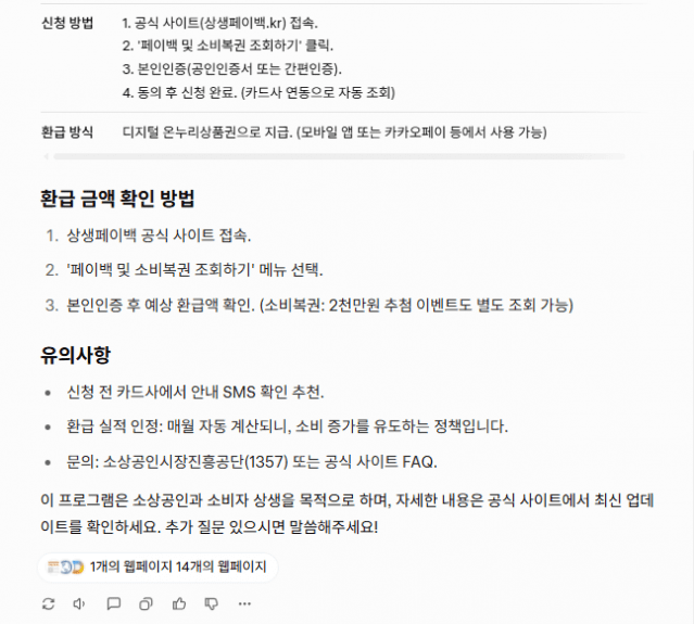 질문: 오늘부터 상생페이백 환급 시작한다는데, 관련 정보를 정리해줘