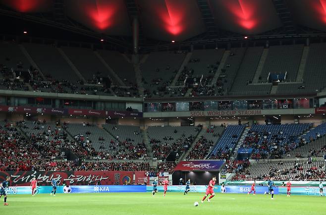 | ▲ A대표팀 경기, 비어있는 관중석 14일 서울 마포구 서울월드컵경기장에서 열린 한국과 파라과이 축구 대표팀의 친선경기. 경기가 진행 중인 가운데 관중석 곳곳이 비어있다. |