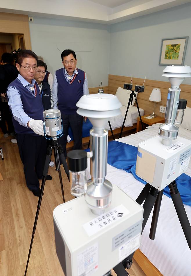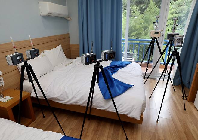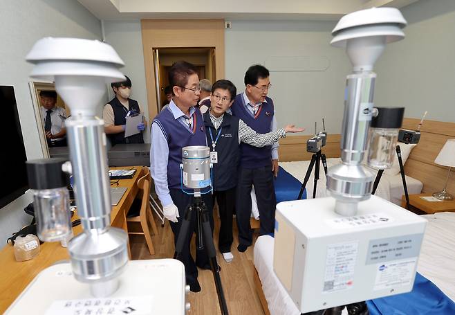 APEC 정상회의를 보름 앞둔 15일 이철우 경북도지사와 주낙영 경주시장을 비롯한 실무진이 경주 보문관광단지 일원에서 준비 상황 현장 점검을 시행했다. 베니키아 스위스 로젠호텔 객실에서 보건환경연구원과 함께 실내 공기 질 검사를 하고 있다. /이용선기자 photokid@kbmaeil.com