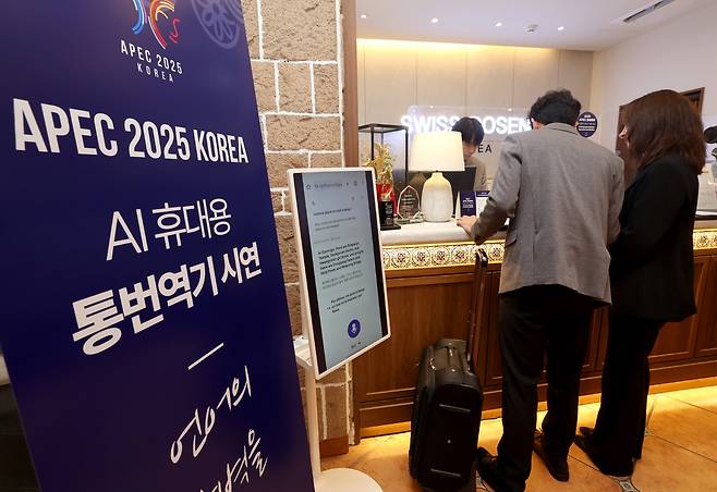 APEC 정상회의를 보름 앞둔 15일 이철우 경북도지사와 주낙영 경주시장을 비롯한 실무진이 경주 보문관광단지 일원에서 준비 상황 현장 점검을 시행했다. 베니키아 스위스 로젠호텔에서 휴대용 통번역기 시연을 통한 응대 상황을 재연하고 있다. /이용선기자 photokid@kbmaeil.com
