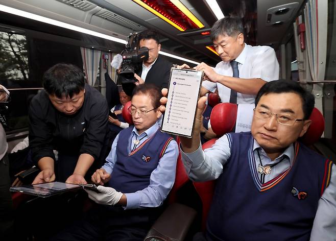 셔틀버스에서 QR코드를 활용한 버스 노선도를 확인하고 있다. /이용선기자 photokid@kbmaeil.com