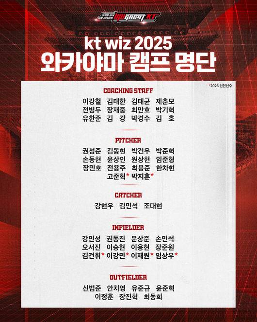 [OSEN=이상학 기자] 프로야구 KT 위즈가 오는 18일부터 내달 19일까지 일본 와카야마에서 마무리캠프를 시행한다.