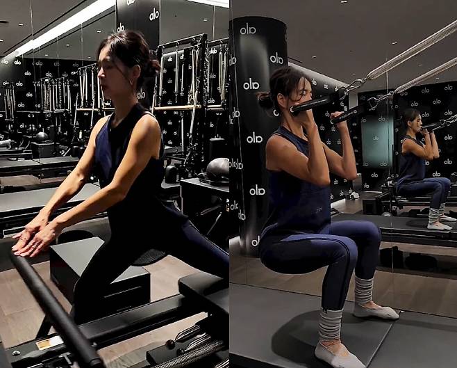 다양한 기구를 이용해 운동에 집중하고 있는 정혜영.