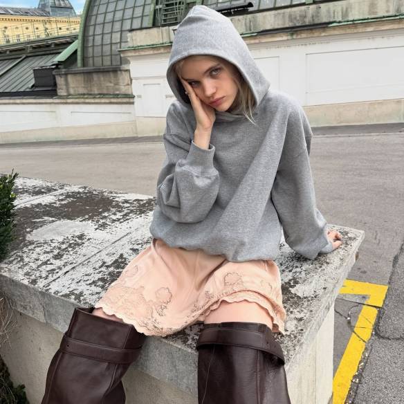 마지막으로 낭만적인 포인트를 더할 레이어링 팁입니다. 루즈핏 후드티 아래로 레이스를 살짝 겹쳐보세요. 캐주얼한 후드티와 섬세한 레이스의 대비가 의외로 완벽한 조화를 이룹니다. 예상치 못한 레이어링이기에, 더 시선을 끌죠. 셔츠나 카디건을 허리에 묶어 포인트를 주는 것도 좋은 방법입니다. 단순해 보이지만 룩에 리듬을 더하고, 컬러와 패턴에 따라 전혀 다른 매력을 완성할 수 있습니다.