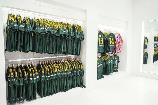 스토어 내부는 팀 컬러인 녹색을 강조한 화이트톤 기반의 모던하고 밝은 인테리어로 꾸며졌다. 벽면에는 대형 LED 사이니지가 설치돼 전북현대의 브랜드 아이덴티티를 시각적으로 구현했으며 팬들이 기념사진을 남길 수 있는 포토존도 함께 마련됐다.