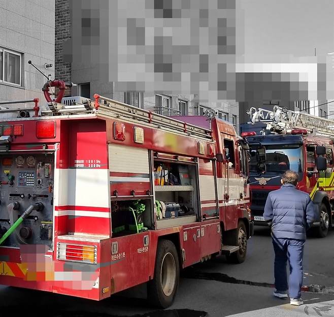 | ▲ 소방차 타는 냄새가 난다는 오래된 빌라촌 신고 현장에 출동한 소방차들 |