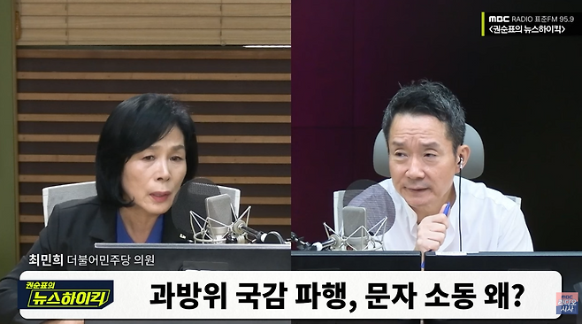◎ 진행자 > 예고해드린대로 최민희 더불어민주당 의원 스튜디오에 모셨습니다. 어서 오세요.