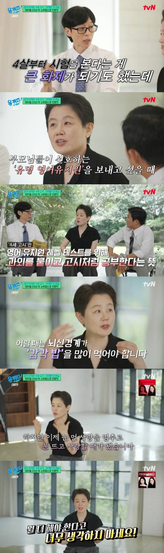 (엑스포츠뉴스 오수정 기자) '유퀴즈'에서 대치동 20년차 소아정신과 전문의가 '4세 고시'에 대해 언급했다.