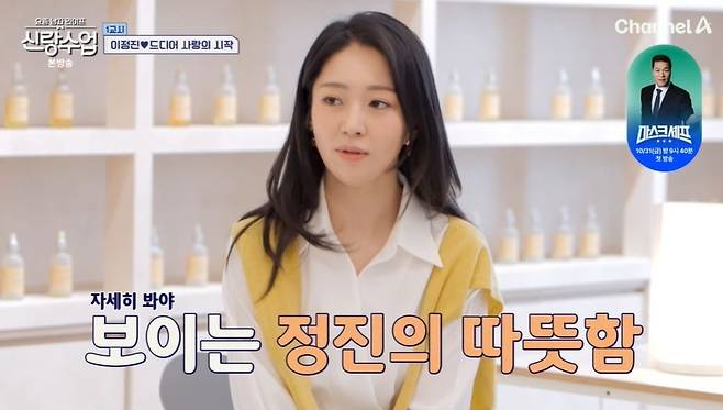 15일 방송된 채널A '요즘 남자 라이프-신랑수업'(이하 '신랑수업')에서는 이승철, 이다해, 심진화, 문세윤, 장우혁 등이 스튜디오에 출연한 가운데, 이정진, 박해리의 데이트가 공개됐다.