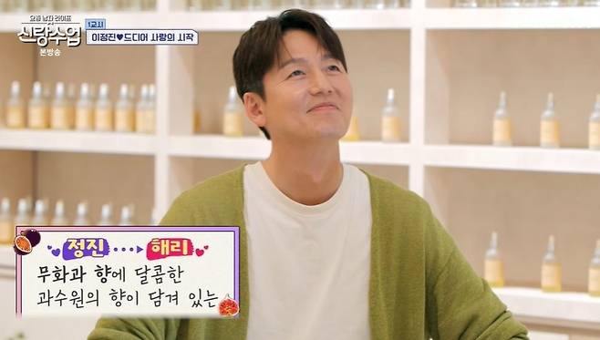 두 사람의 첫 데이트는 향수 공방 데이트. 이정진은 "처음 봤을 때 향을 좋아하신다고 해서 추천받았다"라고 밝혔다. 이정진은 "같이 쓸 수 있는 향도 있지 않냐", "내년에 주는 거 아니냐"라고 의미심장한 말을 하기도. 박해리는 "평소 좋아하는 향이 있는데, 지금은 오빠가 절 보고 생각나는 향으로 만들어줬으면 좋겠다"라고 전했다.